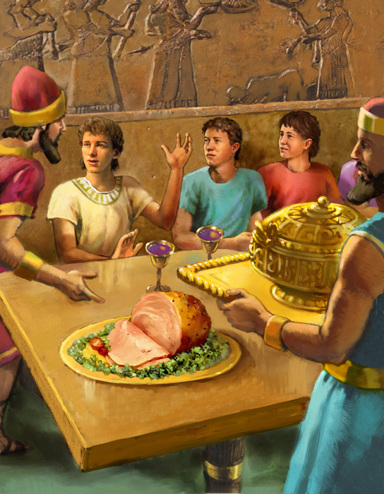 Without wanting to appear ungrateful, Daniel asked if he and his three friends could be given a vegetarian diet to eat and water to drink. At first the king’s servant resisted their request. “You can’t stay healthy by eating like that!” he exclaimed. “You’d get sick, and then the king would have my head.” But Daniel gently persisted, suggesting a trial period of 10 days, after which their visible health could be compared with the young men who ate from the royal cafeteria.