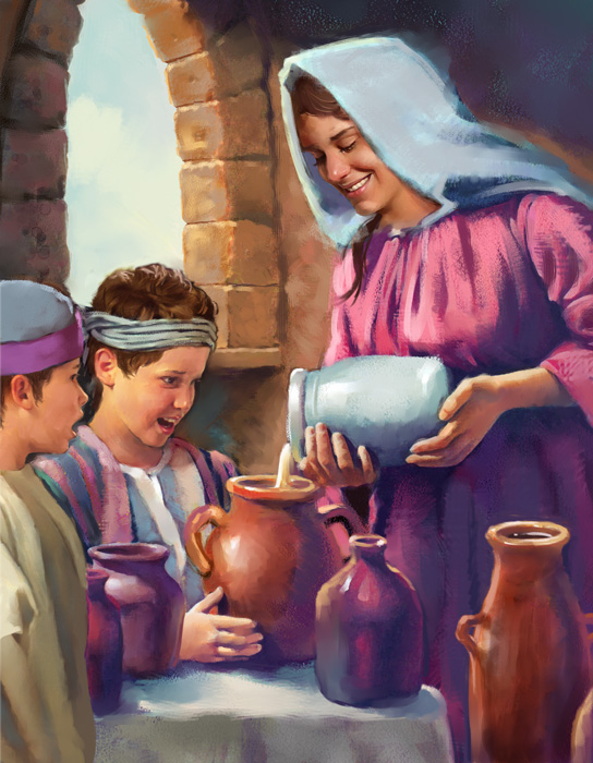 Elisha told the widow and her boys to go and borrow as many empty vessels as possible from their neighbors. They should bring them home, shut the door, and then pour the oil from her little jar into the empty containers. They did as Elisha instructed, and a wonderful miracle occurred. The oil in the little jar continued to flow out until all the vessels in the house were filled!